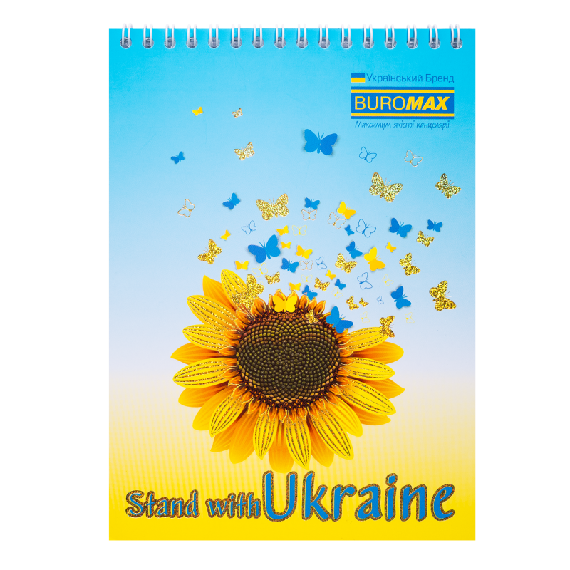 Формат ±А5Кріплення зверху на металевій білій пружині дозволяє легко перевертати аркушіЛінівка клітинка, без рамки48 аркушівофсетний папір білого кольору щільністю 55 г/м²Обкладинка із целюлозного крейдованого картону щільністю 230 г/м²Поліграфічні ефекти обкладинки – вибірковий УФ або структурний лак та тиснення фольгоюТМ Buromax