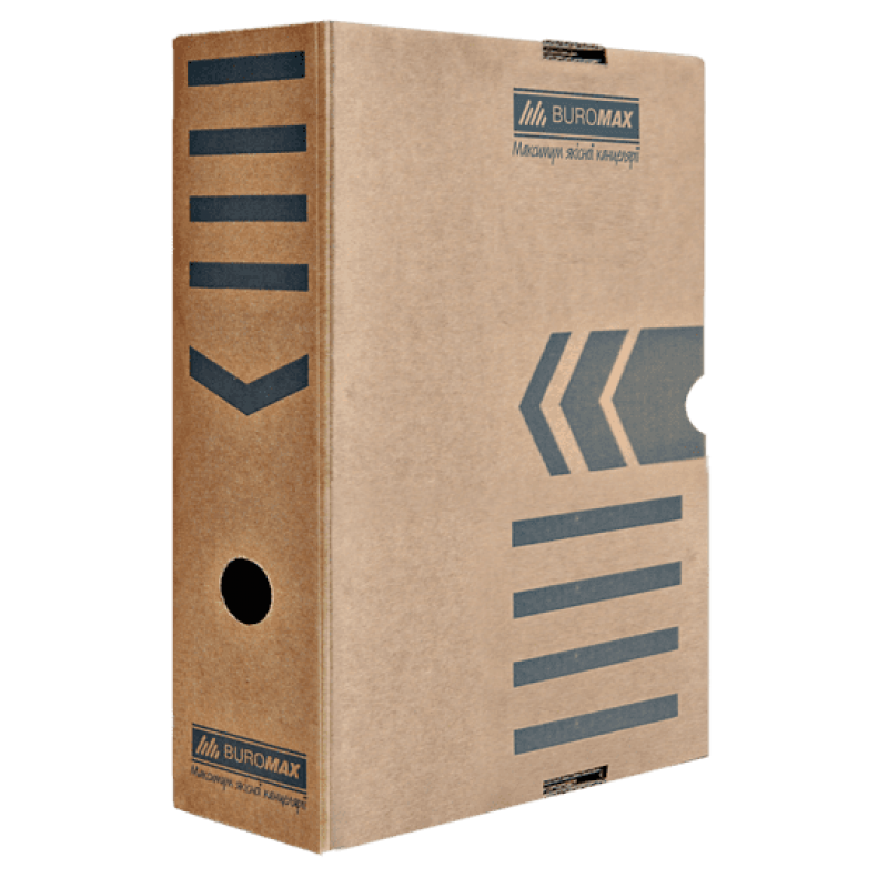 Вміщує два реєстратори А4 шириною торця 70 мм або три реєстратори А4 шириною торця 50 ммМатеріал: якісний тришаровий гофрокартон товщиною 3 мм.Ергономічні отвори для пальцяМісткість до 2000 аркушівМожливість нанесення написів на 5 сторонахМожливість зберігання у горизонтальному та вертикальному положенніМожливе багаторазове складання/розбирання