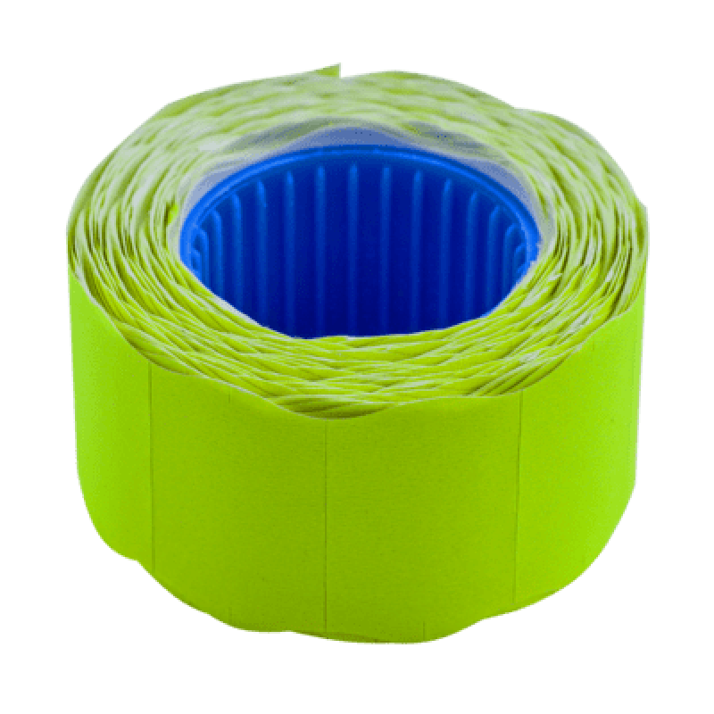 Підходить як для ручного маркування так і для етикет-пістолета. Внутрішня намотка: 1000шт. Довжина намотування: 12м. Втулка із пластику.