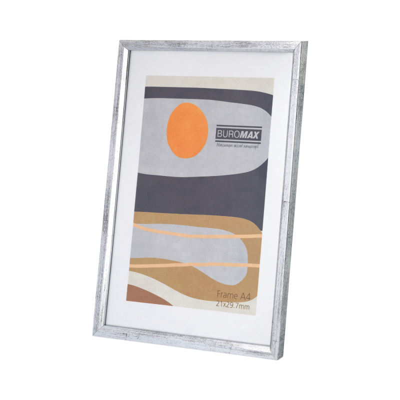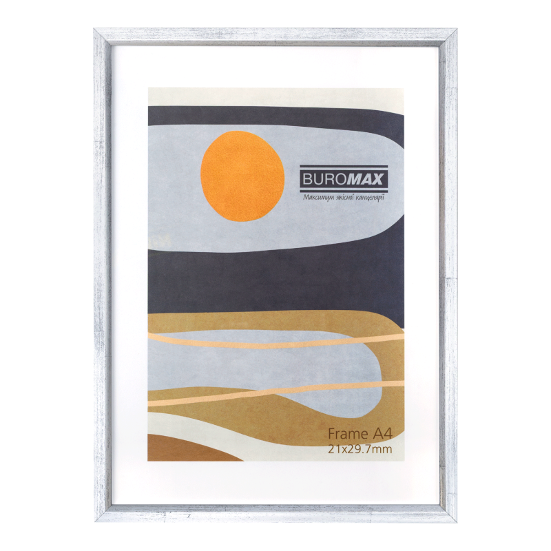 розмір: А4 (210х297 мм)можливе як вертикальне так і горизонтальне розташуваннявкладення захищене прозорим скломрамка з міцного пластикузадня стінка з щільного ДВПнадійні металеві закріплювачі металеве кріплення для підвісу рамки в комплектіТМ Buromax