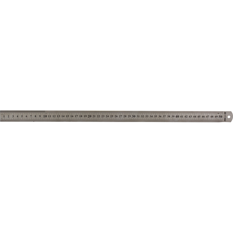 Двостороння лінійка виготовлена з нержавіючої сталі, міцна, стійка до деформації. На одній стороні лінійки знаходяться дві сантиметрові шкали, а на другий - сантиметрова і дюймова. Лінійка оснащена чохлом з PVC-плівки.