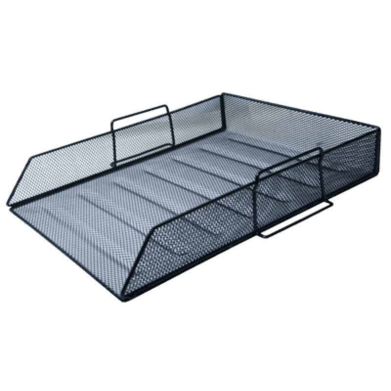 Зроблений з металевої сітки. Міцний матеріал, якісне забарвлення і обробка країв забезпечують надійність і акуратний зовнішній вигляд протягом довгого часу. Має негроміздкі дизайн, 2 рівня, при цьому стійкий і місткий. Призначений для зберігання документів формату А4. Розмір: 203x295x350 мм.