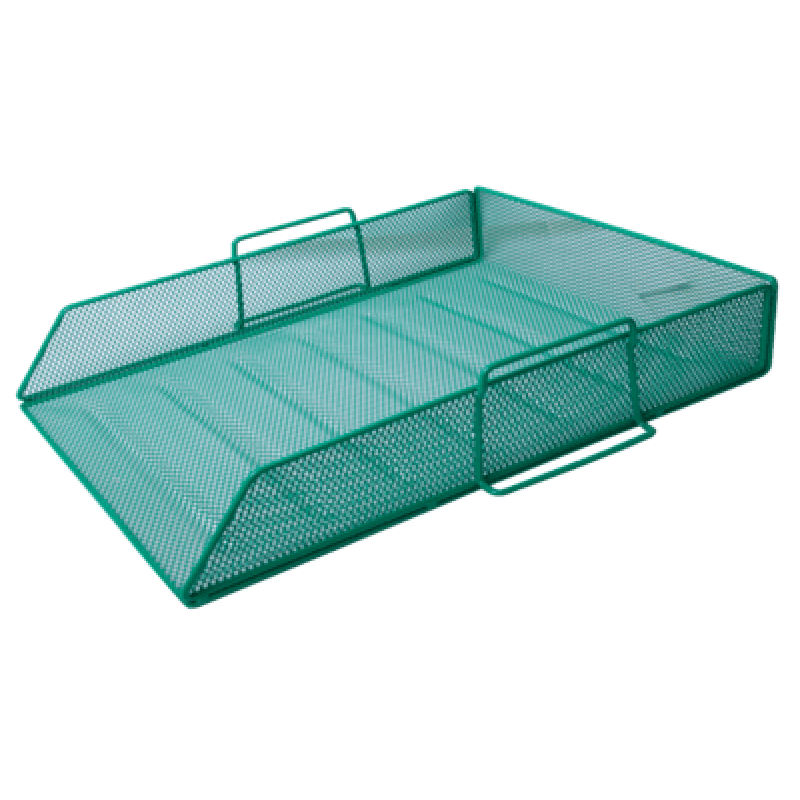 Зроблений з металевої сітки. Міцний матеріал, якісна забарвлення і обробка країв забезпечують надійність і акуратний зовнішній вигляд протягом довгого часу. Має негроміздкі дизайн, 2 рівня, при цьому стійкий і місткий. Призначений для зберігання документів формату А4. Розмір: 203x295x350 мм.