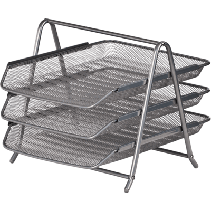 Зроблений з металевої сітки. Міцний матеріал, якісна забарвлення і обробка країв забезпечують надійність і акуратний зовнішній вигляд протягом довгого часу. Має негроміздкі дизайн, 3 рівня, при цьому стійкий і місткий. Призначений для зберігання документів формату А4. Розмір: 263x295x350 мм.