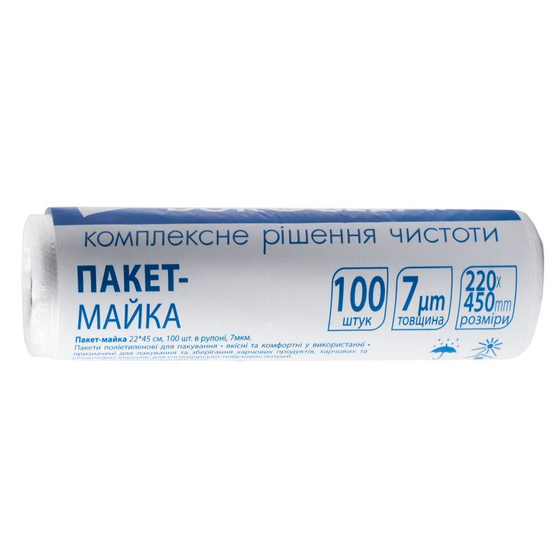 Пакет-майка 22х45 см, 100шт в рулоні, 7мкм