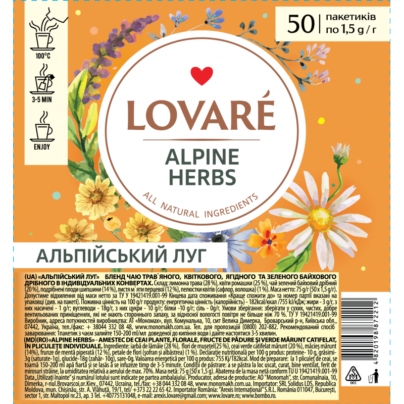 Чай Lovare Alpine herbs , пакет (1,5гх50пак) травяной