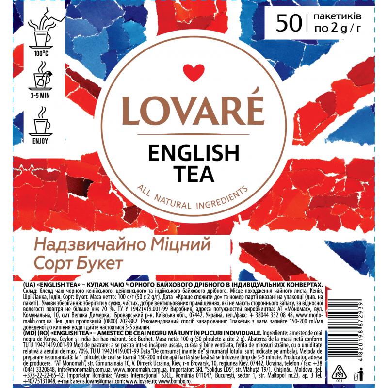 Чай Lovare English tea, пакет (2гх50пак) черный
