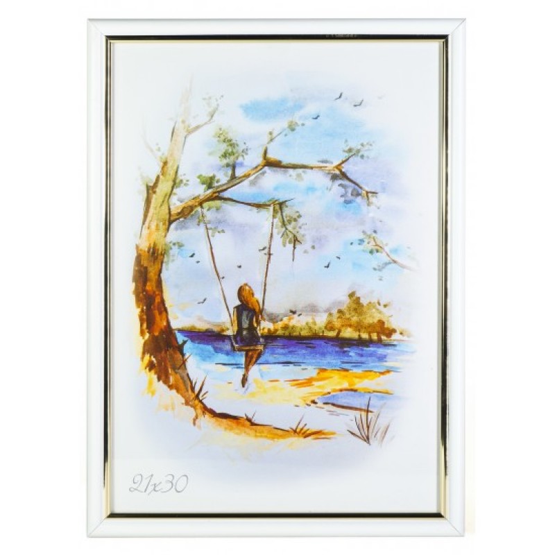 В рамку входит: стекло 1,5 - 2мм, ДВП 2,5мм, навес для крепления на стенку.Упакована в термоусадочную плёнкуРазмер рамки: 21х30см