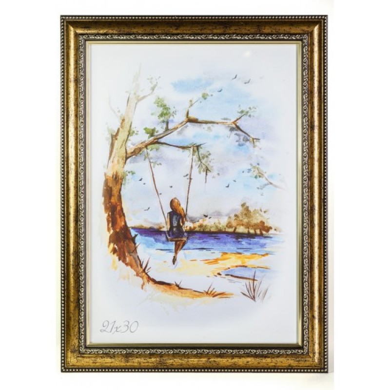В рамку входит: стекло 1,5-2 мм, ДВП 2,5мм, навес молотковый для крепления на стенку.упаковка в термоусадочную плёнку.Ширина рамки: 25мм. Размер рамки: 21х30см