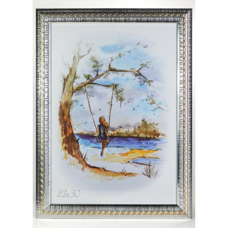 В рамку входит: стекло 1,5-2 мм, ДВП 2,5мм, навес молотковый для крепления на стенку.упаковка в термоусадочную плёнку.Ширина рамки: 25мм. Размер рамки: 21х30см