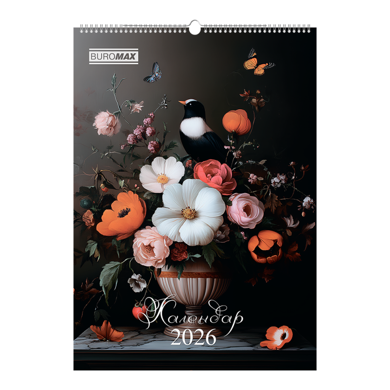 настенный перекидной календарь на 2026 годформат А3 (297х420 мм)содержит 13 листов высококачественной мелованной бумаги плотностью 200 г/м2;оригинальный дизайн с большим постеромвыходные обозначены красным цветомпружина с изгибом под гвоздь;каждый календарь – в индивидуальной упаковкеТМ Buromax