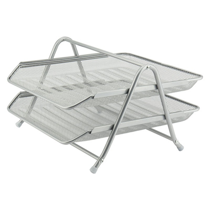 Сделан из металлической сетки. Прочный материал, качественная окраска и обработка краев обеспечивают надежность и аккуратный внешний вид в течение долгого времени. Имеет негромоздкий дизайн, 2 уровня, при этом устойчивый и вместительный. Предназначен для хранения документов формата А4. Размер: 203x295x350 мм.