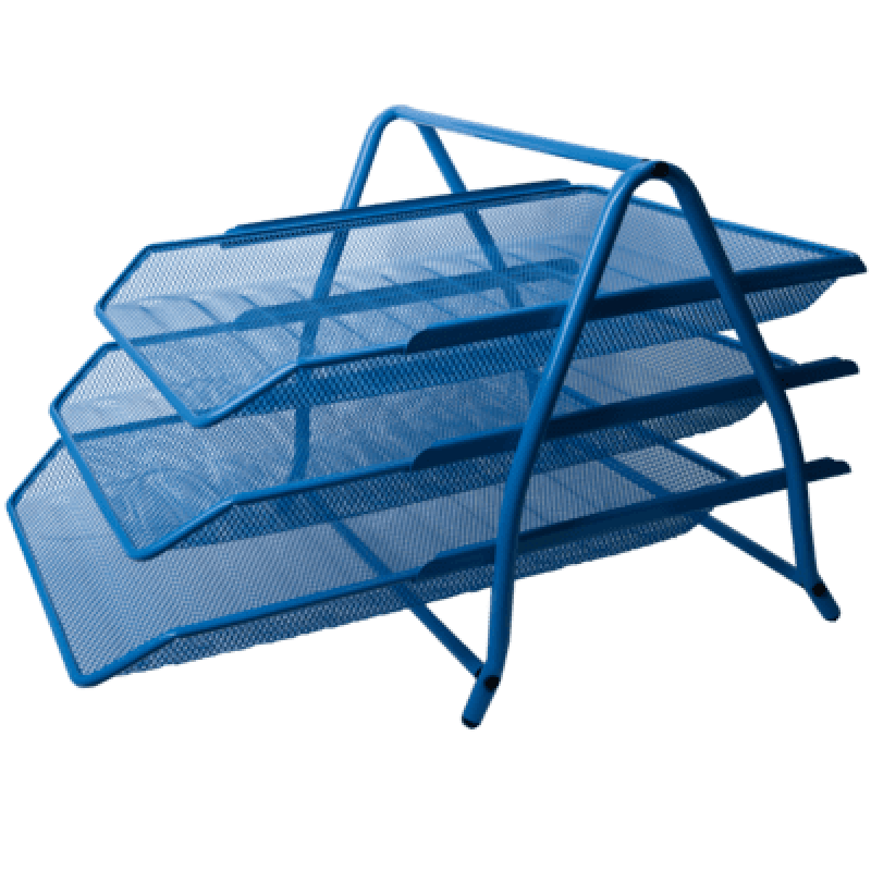 Сделан из металлической сетки. Прочный материал, качественная окраска и обработка краев обеспечивают надежность и аккуратный внешний вид в течение долгого времени. Имеет негромоздкий дизайн, 3 уровня, при этом устойчивый и вместительный. Предназначен для хранения документов формата А4. Размер: 263x295x350 мм.