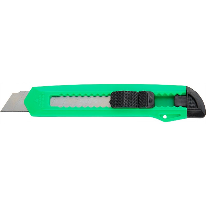Со стальным многосекционным лезвием. Эргономичный корпус из прочного пластика, механизм ступенчатой подачи лезвия. Фиксатор лезвия.