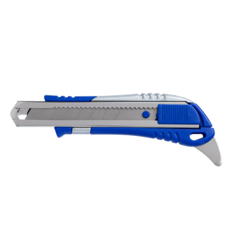 Ширина лезвия: 18 мм., пластиковый корпус, металлическая направляющая, автоматический фиксатор лезвия, индивидуальная упаковка, сменные лезвия ВМ.4691.