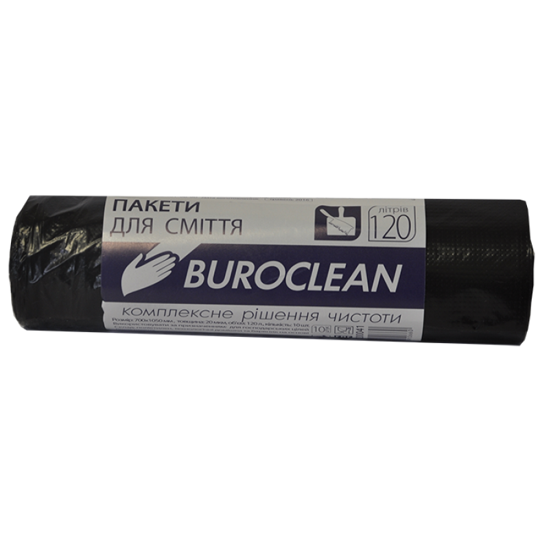 Обьем: 120 литров; 10 штук в намотке; размер: 700х1050 мм; материал: LDPE; толщина: 20 мкм; цвет: черный.