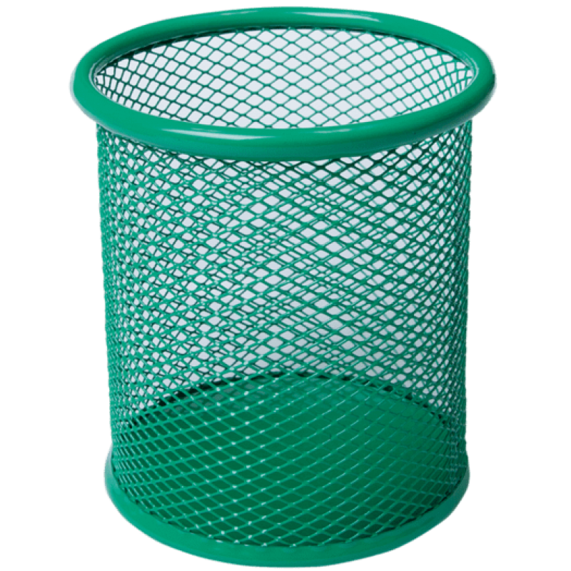 изготовлена из металлической сеткисглаженные швы на изделиях для безопасности при использованиицельнометаллическое дно - не потеряются даже мелкие предметы, такие как скрепки или канцелярские кнопкиформа: круглаяразмер: d90х98мм