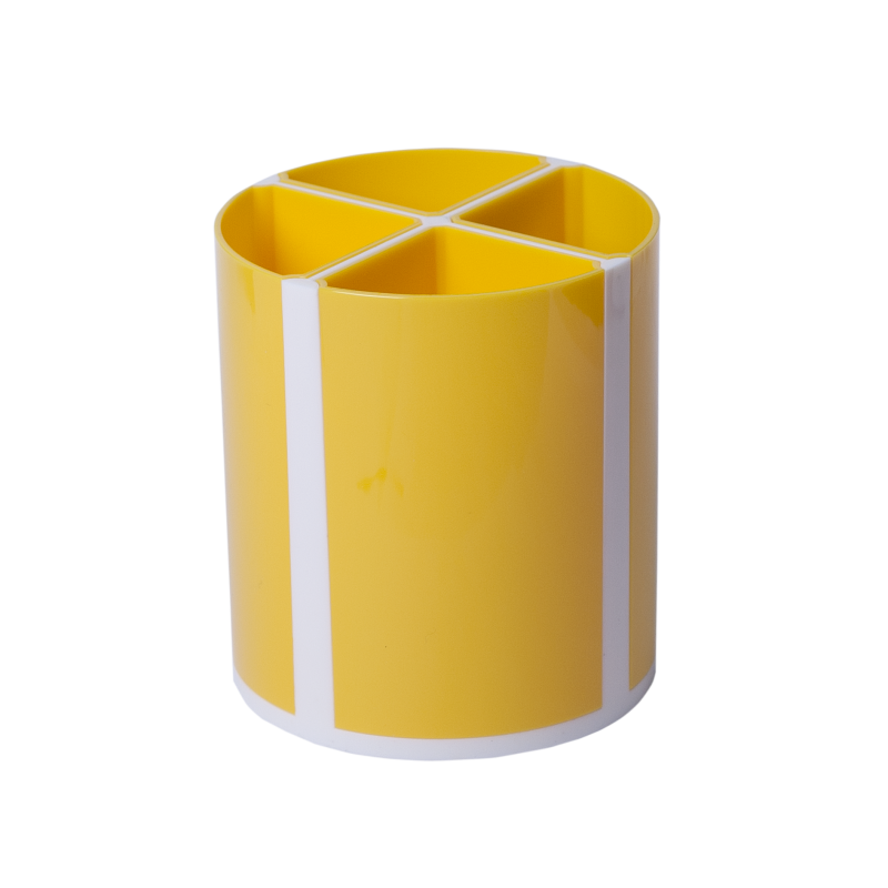 Настольный стакан – подставка для письменных принадлежностей на 4 отделения. Материал - цветной нетоксичный пластик. Размер: 90х100 мм