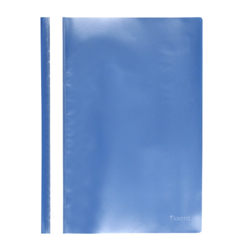 Скоросшиватель изготовлен из плотного полипропилена толщиной 150 мкм, с прозрачным верхом толщиной 120мкм. На лицевой стороне расположен карман с пластиковой полосой белого цвета, на которой можно указать содержание. Вмещает до 50 листов.