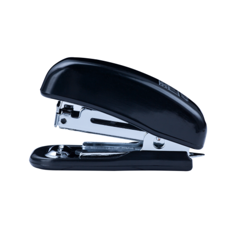 Для настольного и ручного скрепления листов бумаги, скрепляет до 15 листов бумаги 80 г/м2, скоба: №10, пластиковый корпус, металлическая подошва, прорезиненное покрытие основания подошвы предотвращает скольжение степлера по столешнице, встроенный дестеплер.ТМ Buromax