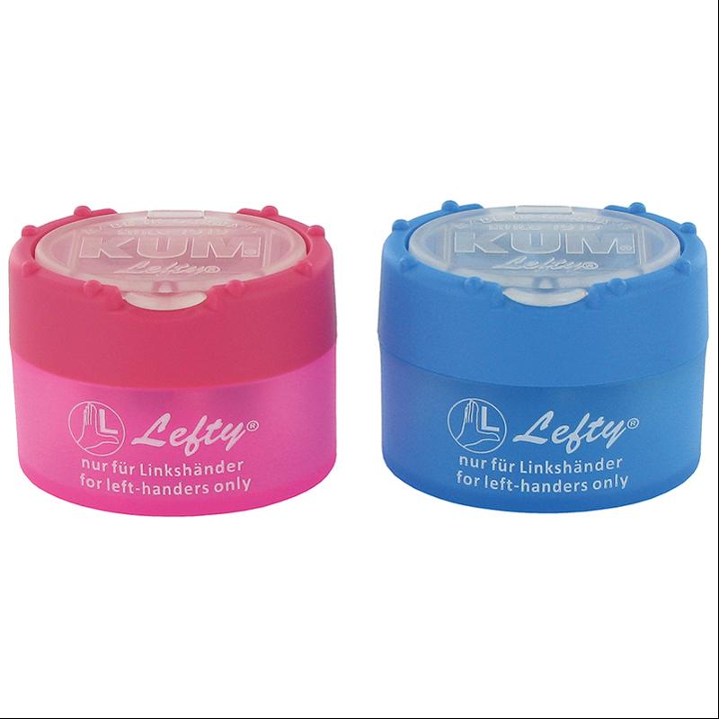 Точилка для левшей пластиковая на 2 отверстия. 2 цвета: розовый и голубой.