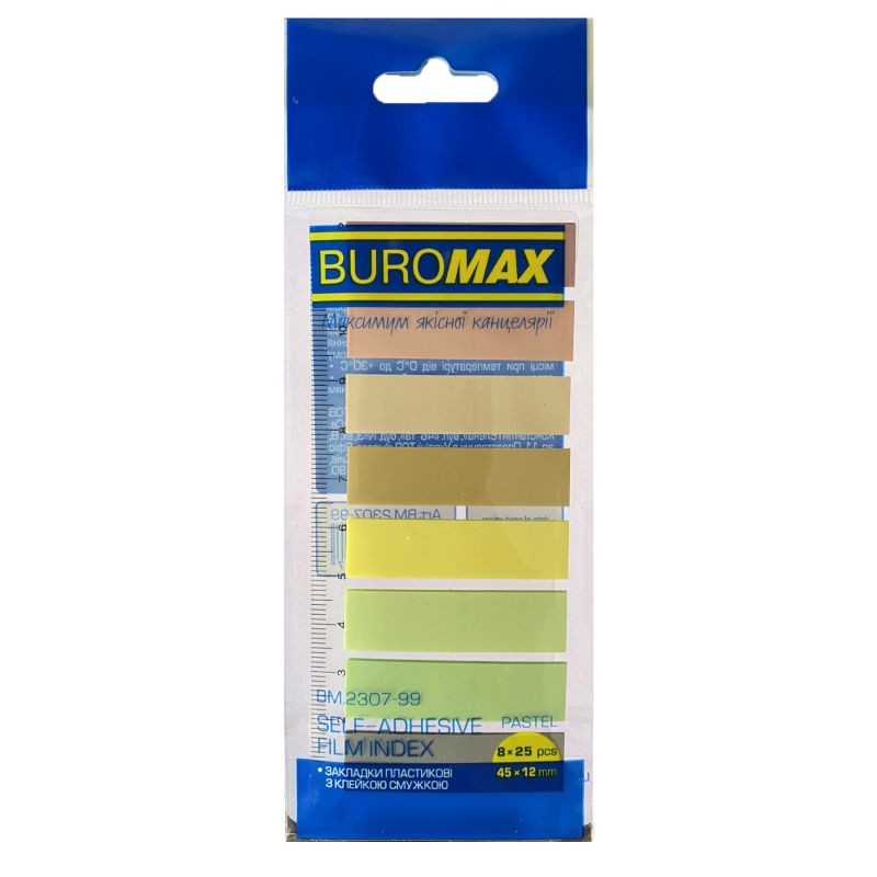 8 цветов (8 блочков) по 25 шт. в удобном диспенсере с нанесением шкалы измерения длины (с линейкой)