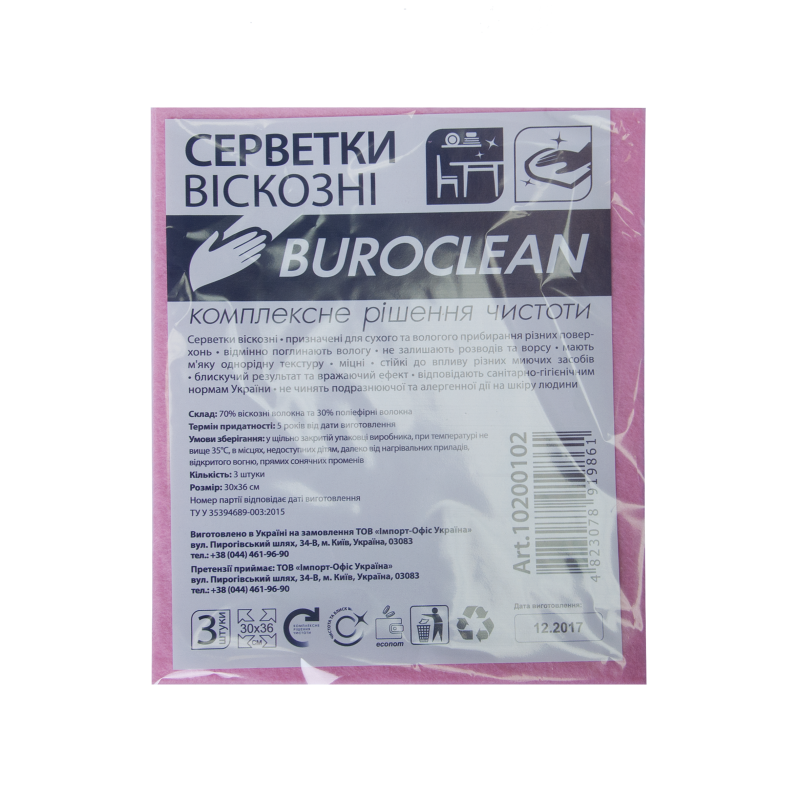 Серветка віскозна Buroclean 30х38мм. 3шт/уп