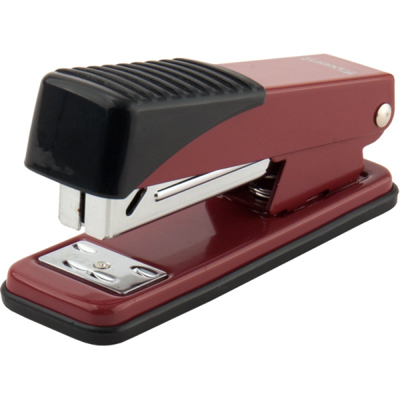 Всі робочі механізми і корпус виконані з металу. Пластикова вставка зверху на рукоятці забезпечує ергономічність використання способу скріплення з закритого на відкрите натисканням кнопки на підошві степлера. Віконце контролю наявності скоби. Пластикова підошва з прогумованої вставкою не ковзає і не дряпає поверхню столу. Зшиває до 25 аркушів.