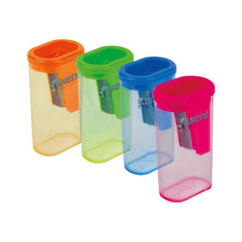 Пластикова чинка з контейнером Axent легко і акуратно заточує олівці завдяки гострому лезу, яке нерухомо кріпиться до корпусу шурупом. Має компактний контейнер з міцного пластику яскравих кольорів.
